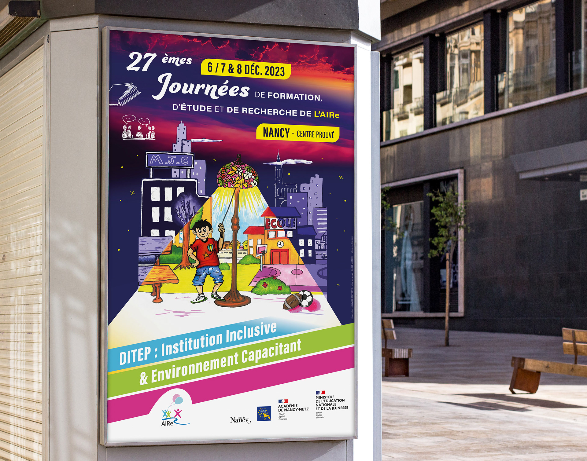 Conception du visuel pour la 27 èmes journées de formation, d'étude et de recherche de l'AIRe au Centre Prouvé à Nancy les 6, 7 et 8 Décembre 2023